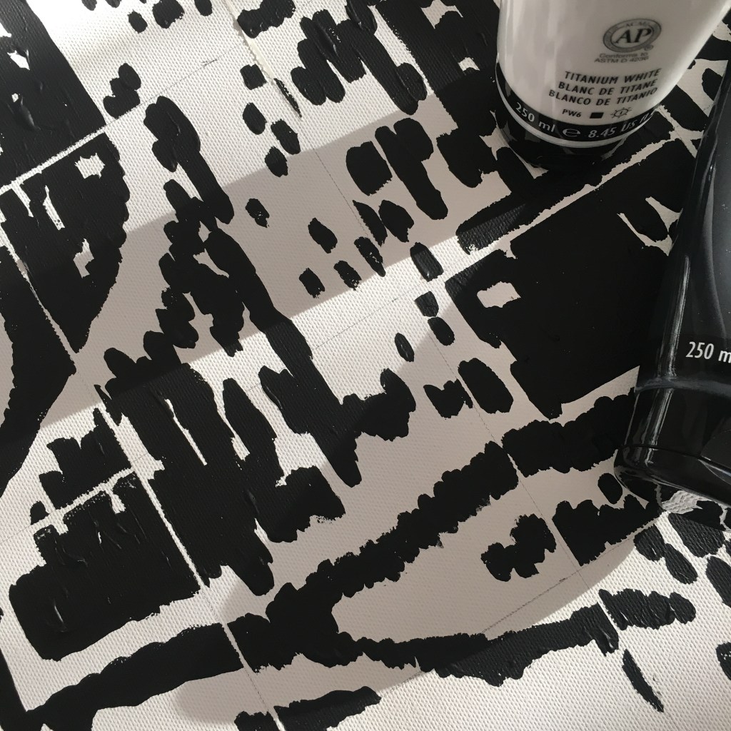 Potatisplanta, 100 x 100 cm i akryl på duk. Lustfylld sysselsättning i coronatider.