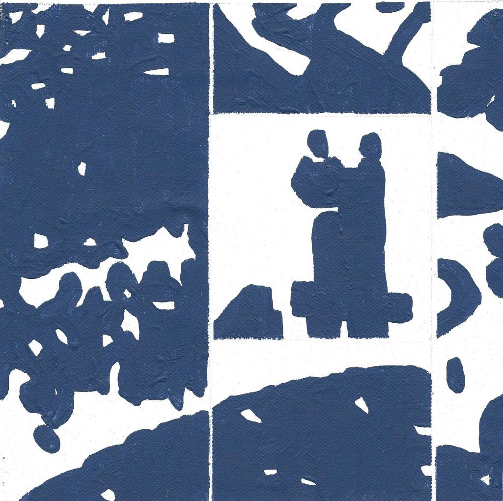 16/50. Hav, akryl på duk, 20×20. Inspirerad av berättelsen om Norrbyskär, sågverksön i Bottenhavet.