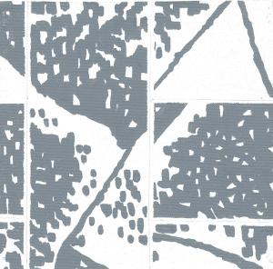36/50. Ved / episod, akryl på duk, 20×20. Inspirerad av berättelsen om Norrbyskär, sågverksön i Bottenhavet av Gudrun Norstedt. ”Bredvid spisen stod vedlådan” (sid 82).