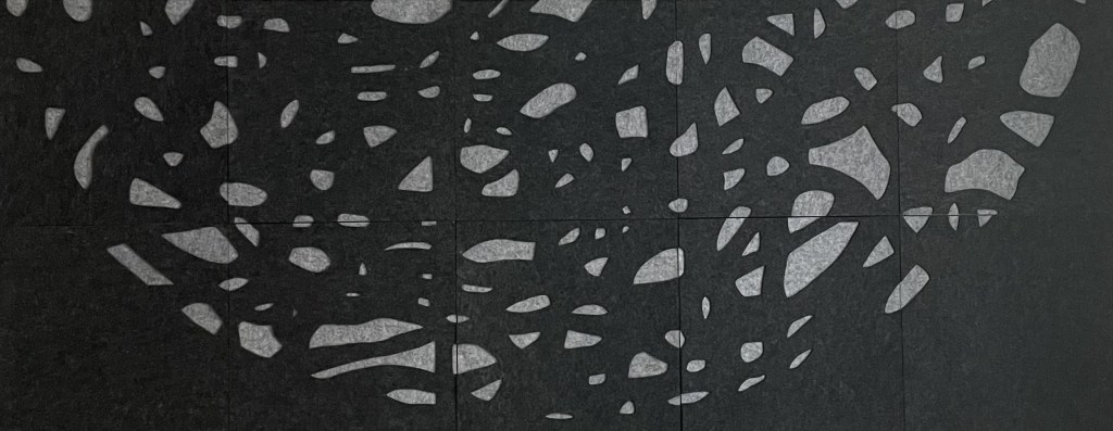 Akustikkonst är textila konstverk med konstytor i filt monterade med kardborre på ljudabsorbenter, monterade på ramverk i trä. Både ljuddämpande och förnyelsebara med smart designlösning. Akustikkonst absorberar ljud och bidrar till harmoni i offentliga och privata rum.