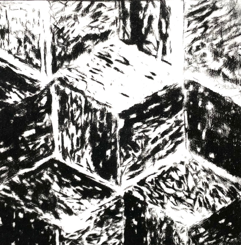 Torrnålstryck på koppartryckspapper.