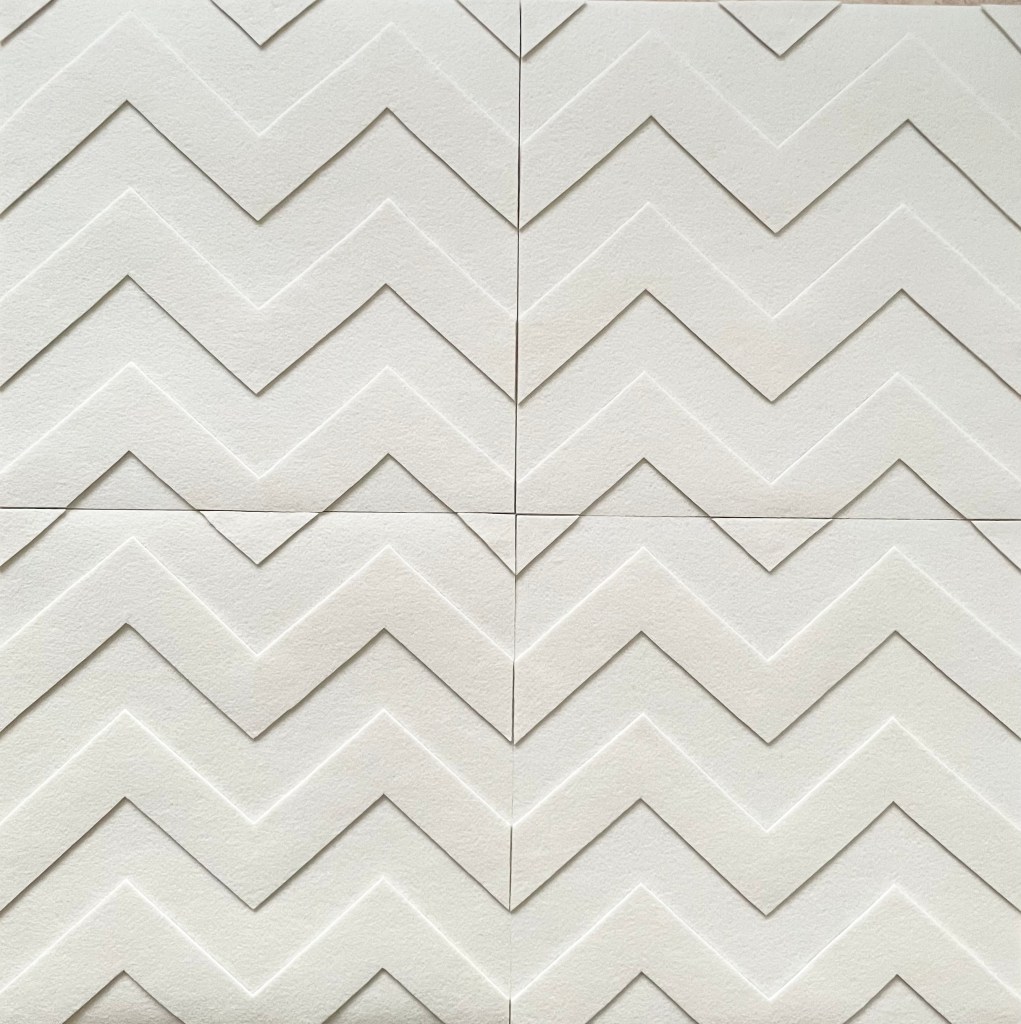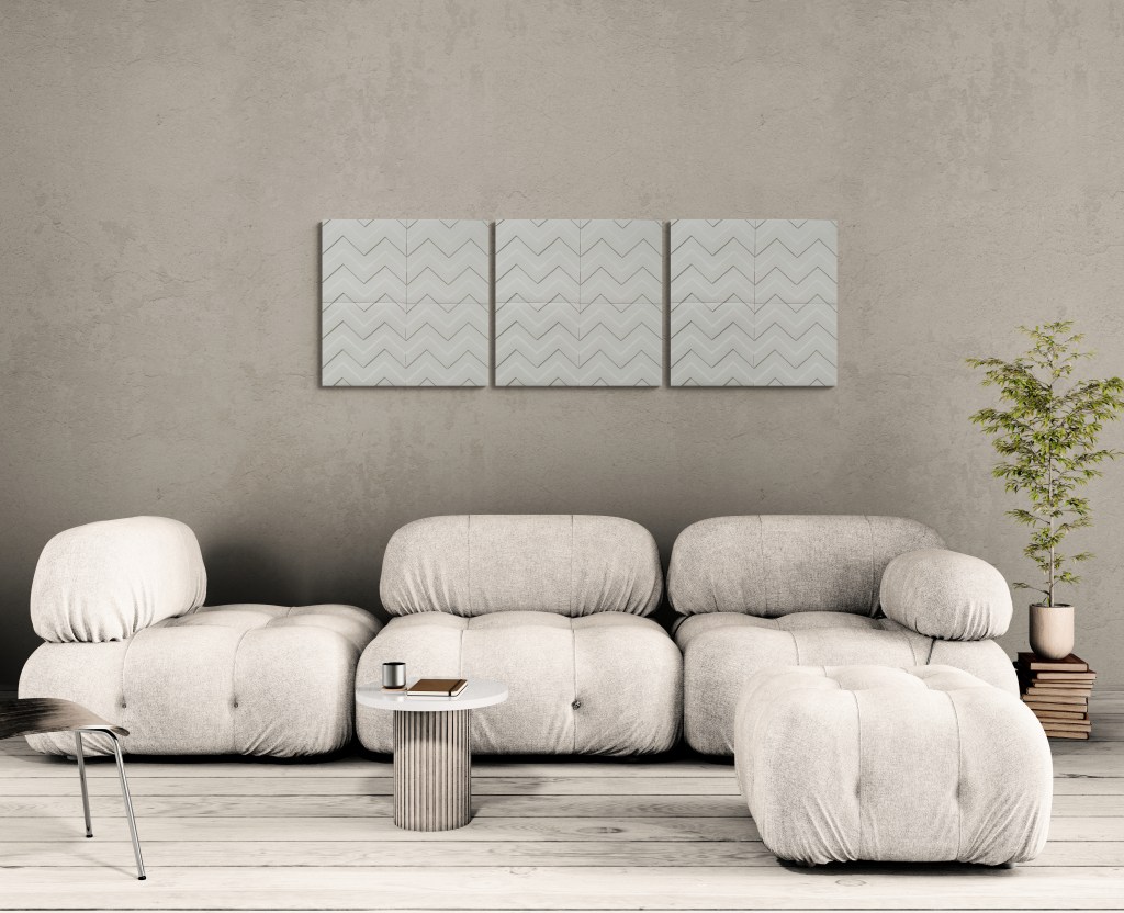 Stilrent handgjort konstverk av filt som dämpar ljud och bidrar till en bättre rumsmiljö. Flera konstverk kan monteras på rad, i kvadrat eller i större formationer beroende på rummets estetik. Konstverket är skapat i återvinningsbar polyester som har många bra egenskaper. Det är giftfritt, lätt, vattentåligt och lättstädat.